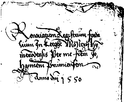 In der Einwohnerliste von Kettig nach dem Güterregister des Klosters Himmerod aus dem Jahre 1550 (Landeshauptarchiv Koblenz Abt. 96 Nr. 3083) erscheint zum ersten Mal der Name Hillesheim in Kettig. Die Urkunde beginnt mit dem folgenden Text: Renovatium Registrum foedalium in Kettghe Monesterij Hymerodensis per me fidem Johannem Prumensiem Anno domini 1550 |